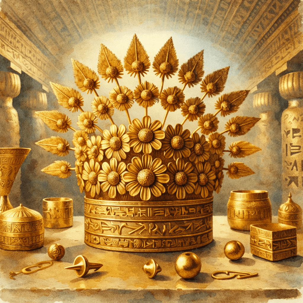 🪙 Královské pohřby v Uru – V hrobkách sumerských královen (např. Puabi) archeologové objevili nádherné koruny zlatých listů a květů připomínající věnce. Pravděpodobně se nosily při rituálech a měly chránit duši na cestě do podsvětí.