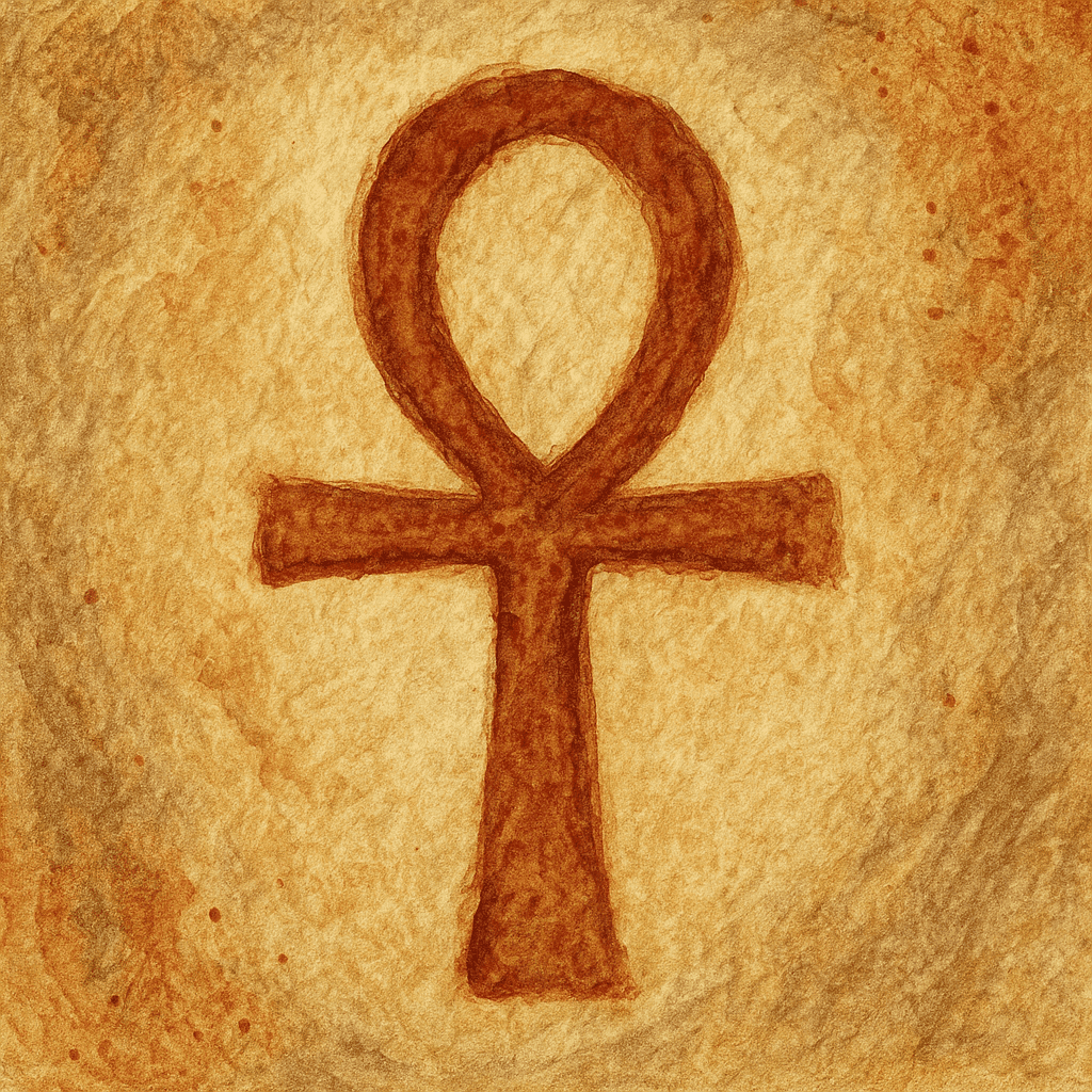 Starověký egyptský Ankh symbol v akvarelové technice, inspirovaný kulturou a tradicemi starověkého Egypta, ideální pro tvorbu šperků, dekorací a uměleckých projektů.