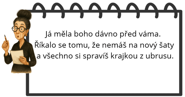 👉 Vtip je v tom, že zatímco někdo utrácí majlant za „ručně trhanou krajku v butiku“, ty si vezmeš ubrus po babičce – a jsi boho chic.