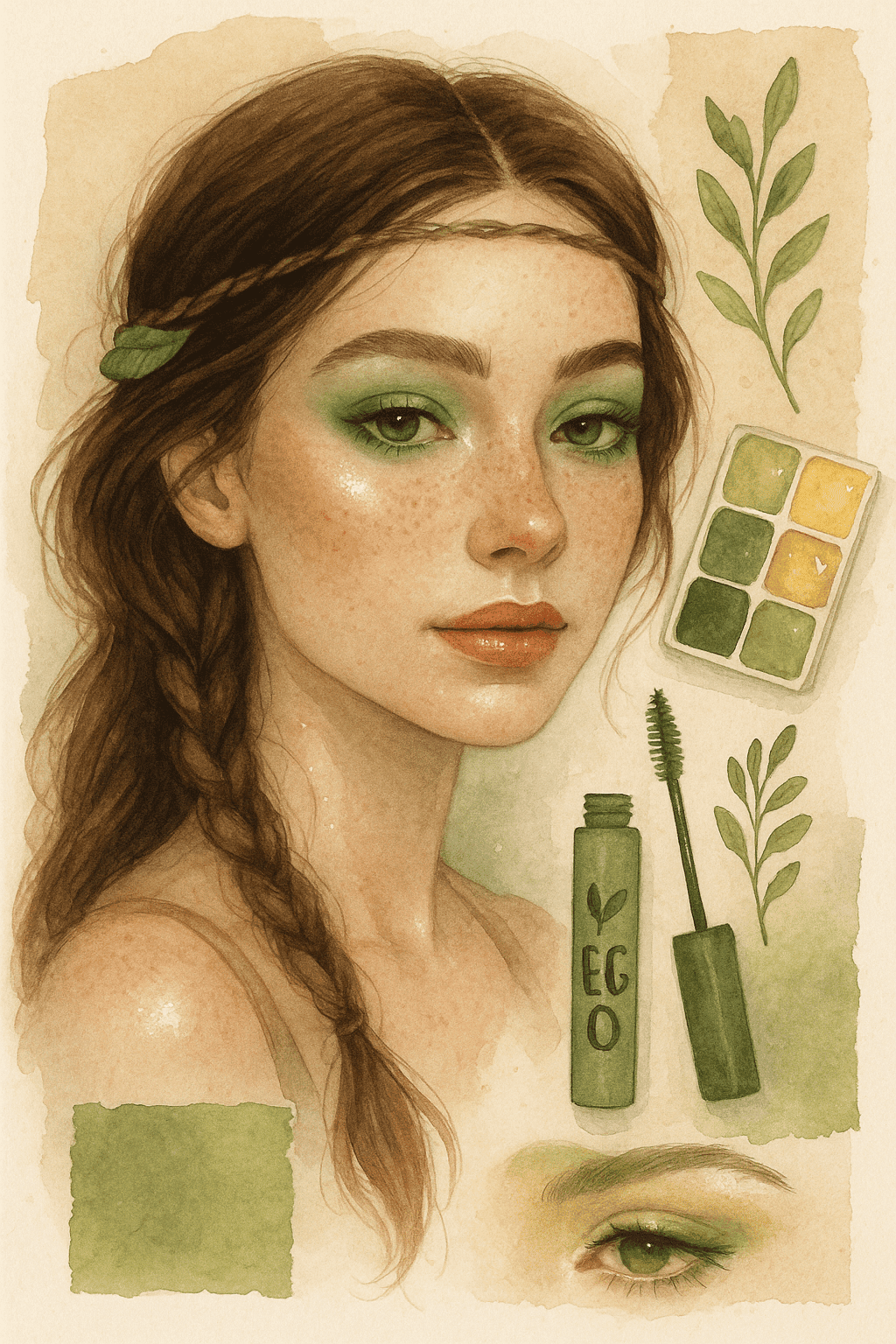 Chceš doladit outfit do posledního lístku? Zkus boho green makeup – přírodní kosmetiku v odstínech mechu, lišejníků a kapradí. Jemně rozmazaná linka, trocha třpytu na víčkách a rty, co připomínají šípkový čaj – a najednou jsi v souladu s lesem, i když stojíš na tramvajové zastávce.