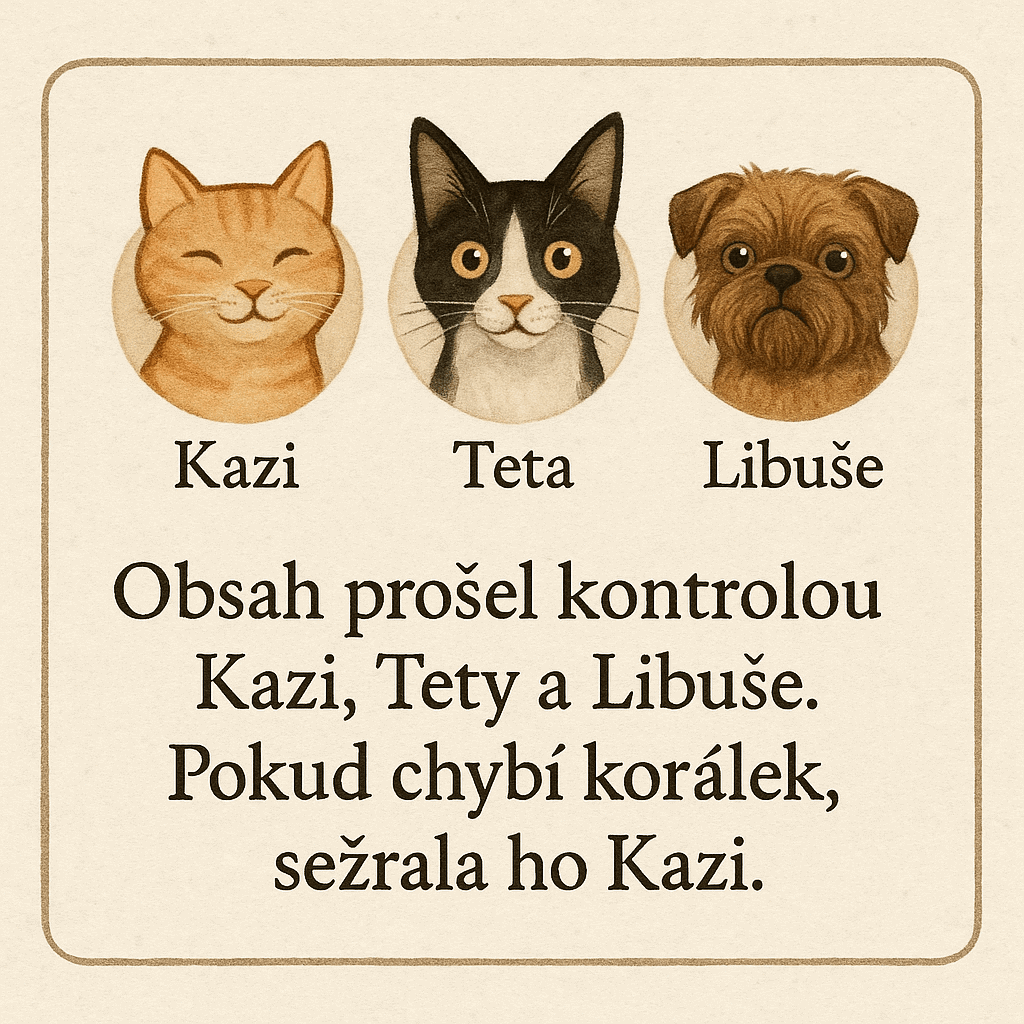 - Styl: Malý, chlupatý a přesvědčený, že vládne všemu – včetně Babči.