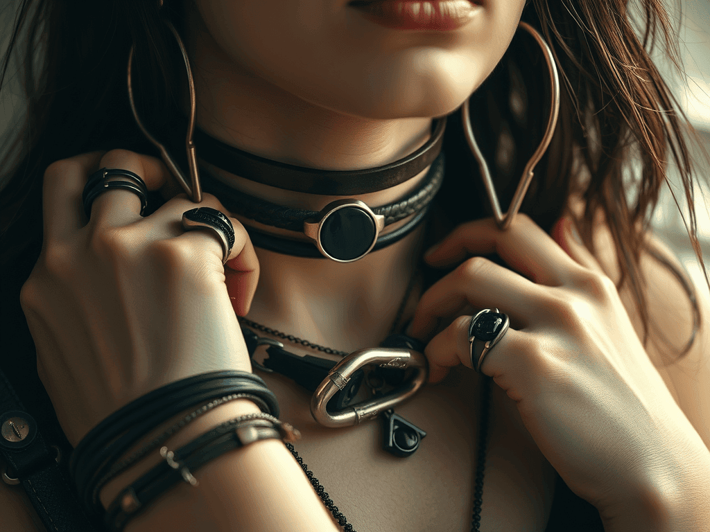 Chokery z kůže, náramky z tkanin nebo kovové manžety, náušnice ve tvaru bezpečnostních špendlíků a prsteny s onyxem – šperky grunge subkultury jsou nenápadné, ale mají duši. Černé kovy, zemité tóny a DIY vibe podtrhují autentický styl. 🖤🎶