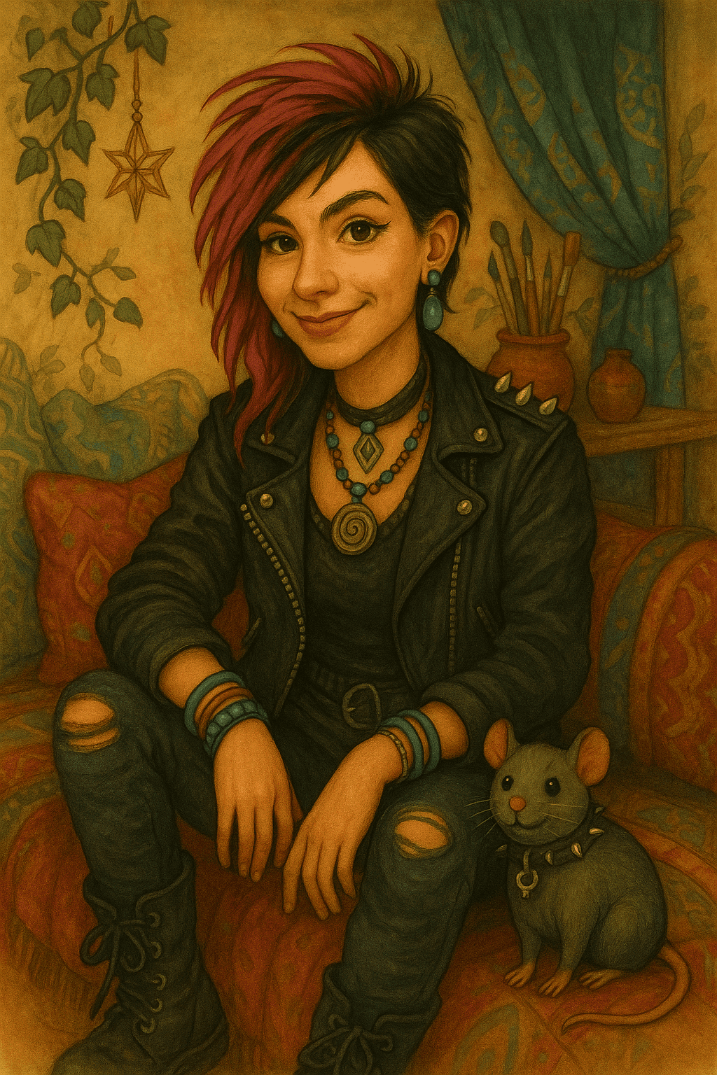 Její styl? Chaos s návodem od srdce. Punk. Grunge. Metal. Trochu šroubovák a hodně „udělej to sám, ale s výkřikem“.
