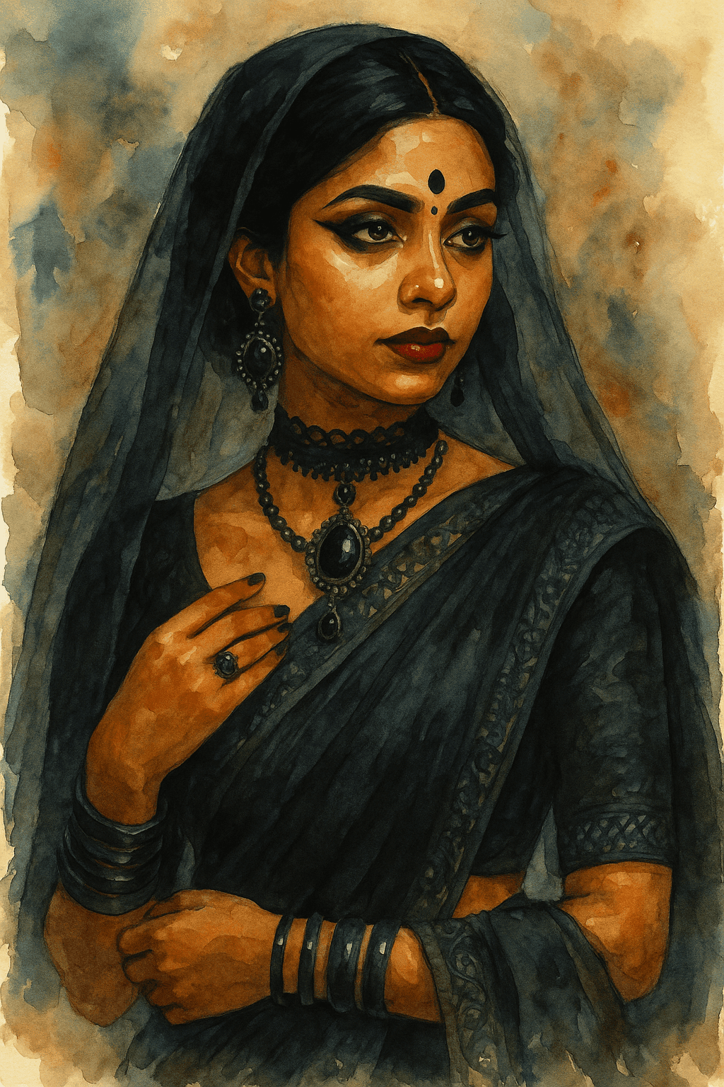 🇮🇳 Gótico en India: sari negro, obsidiana y estilo fusión